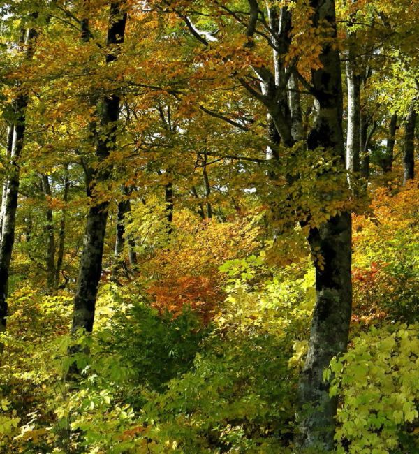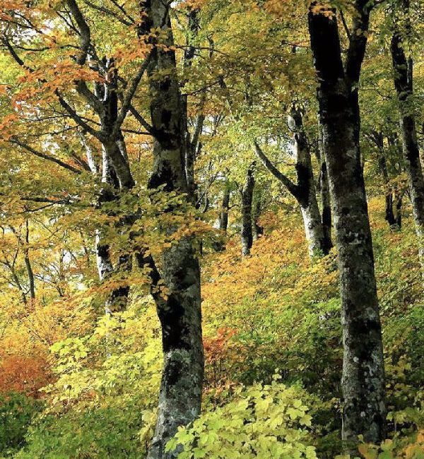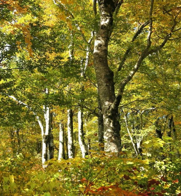 白山白川郷ホワイトロードの白川郷展望台駐車場からブナの小道を登る。