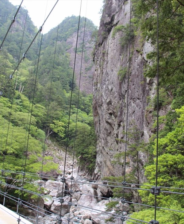 吊り橋から見上げる平等嵓は、奇観の絶壁で迫力がある。
