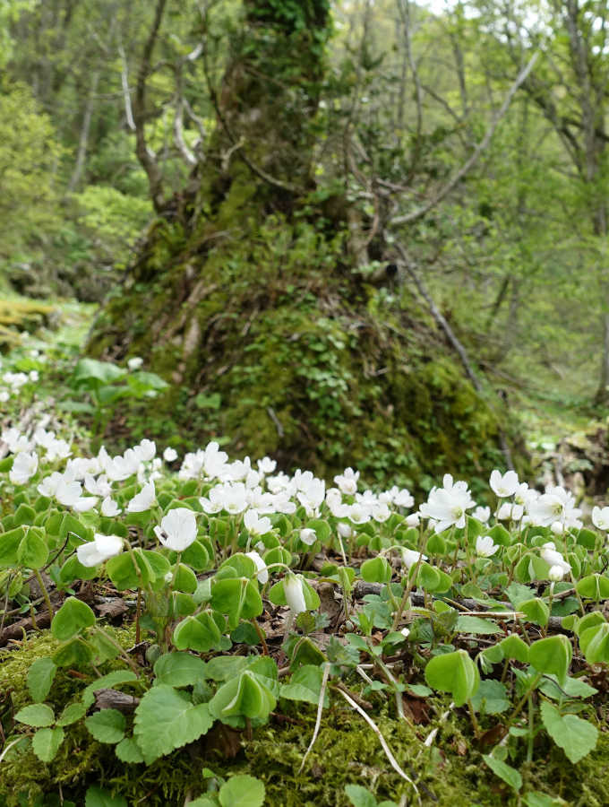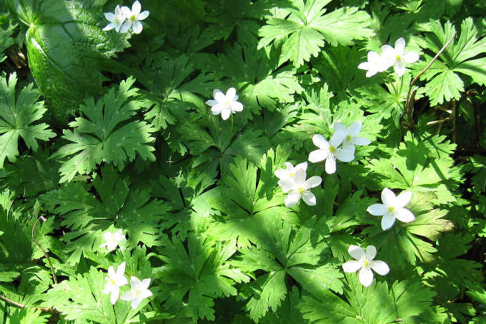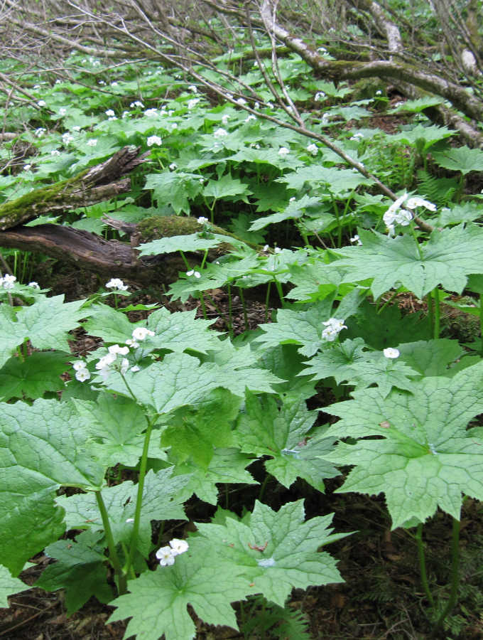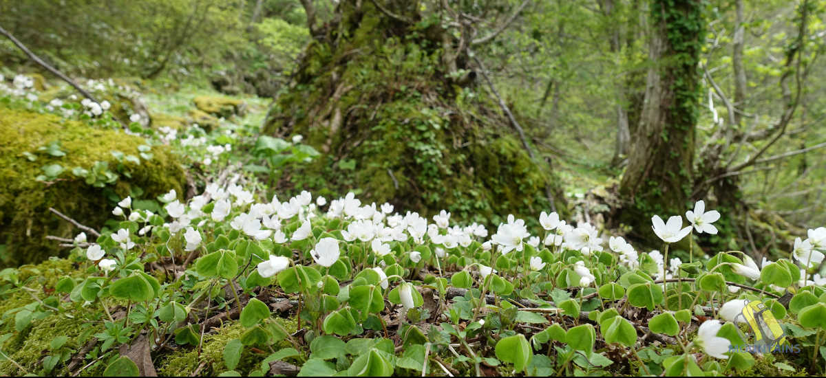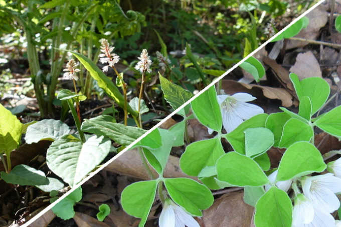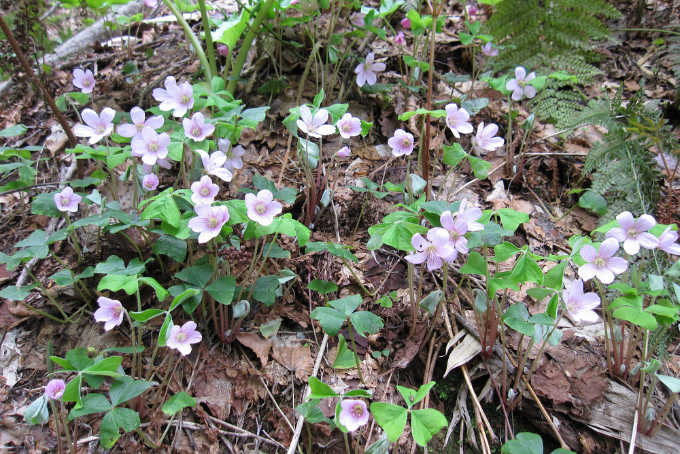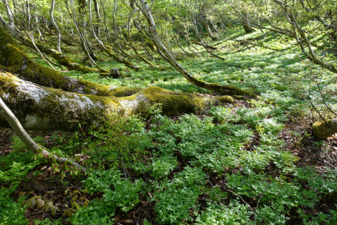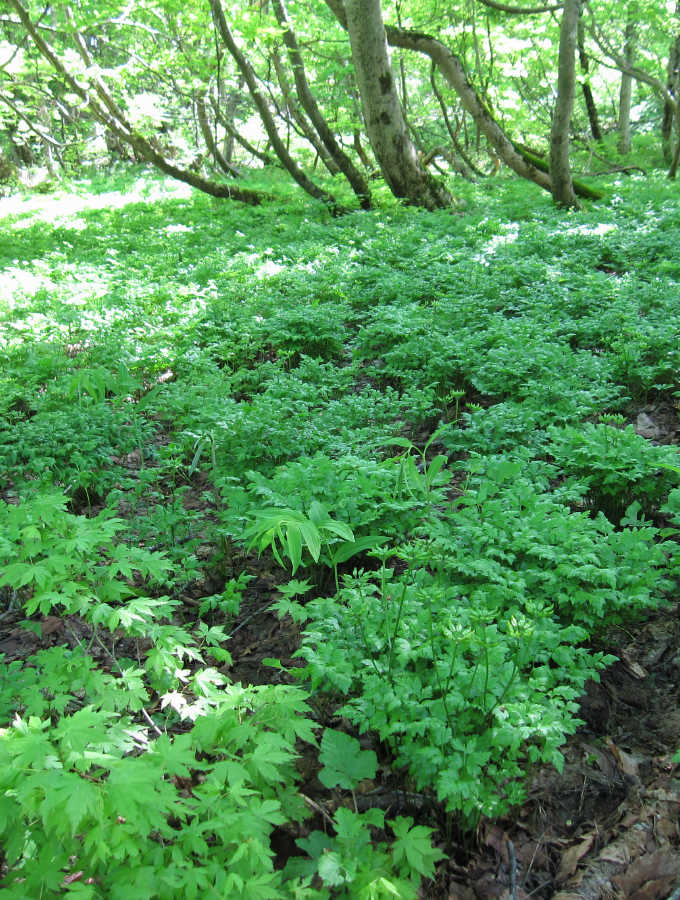 登山道の両脇一面のオウレン畑で見事なまでの群生地である。この時期は既に花は終わっていたが、5月ごろはきっと花が楽しめるであろう。