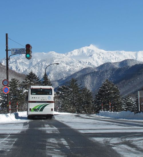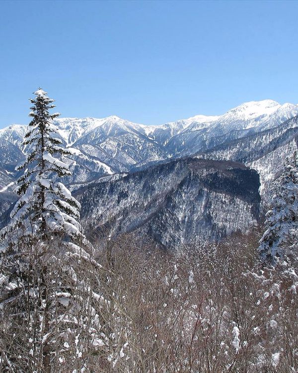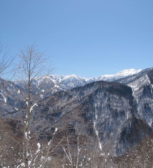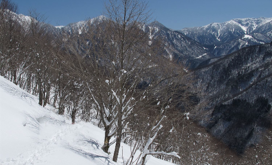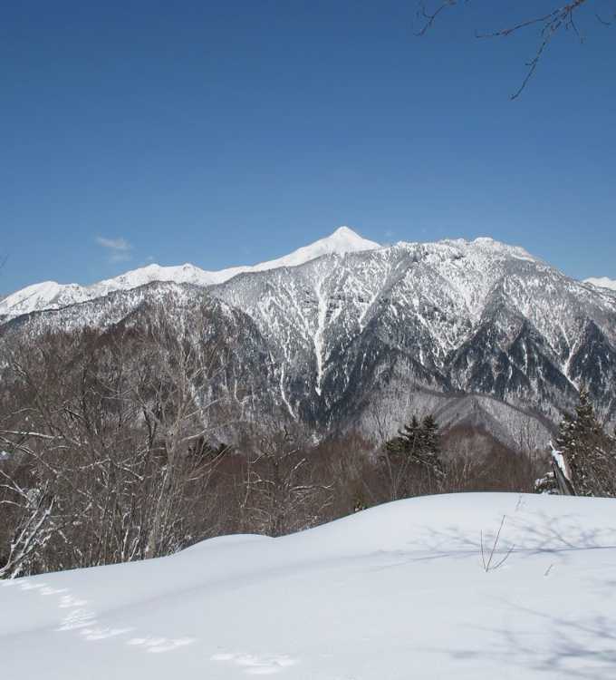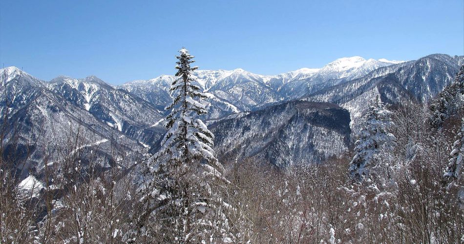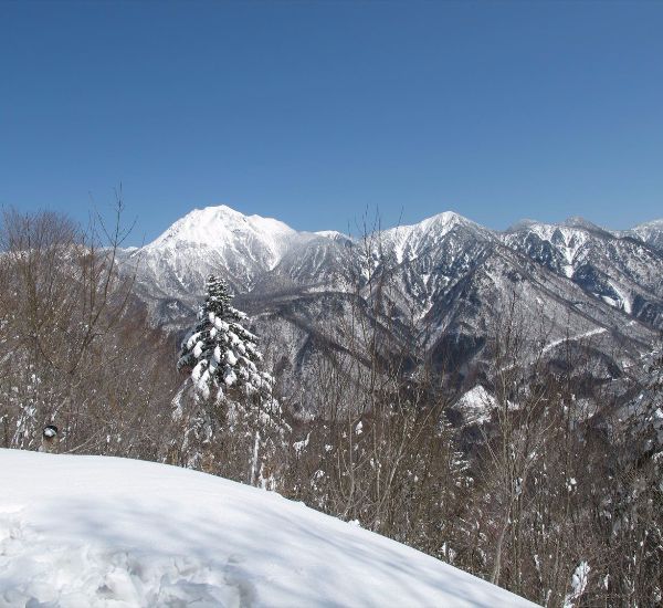 北アルプス最高の展望台・福地山に登る。山頂からは冠雪の穂高連峰、笠ヶ岳、焼岳、乗鞍岳と大パノラマが満喫できる。
