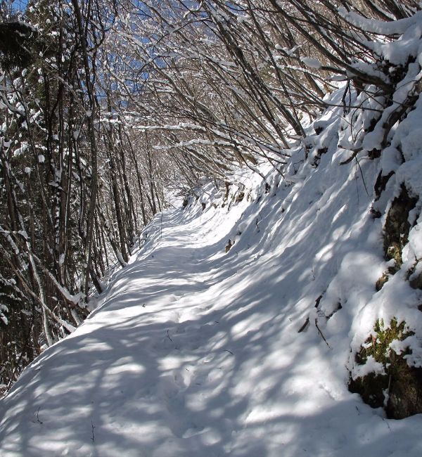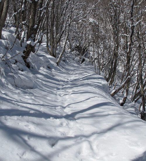 樹林帯の登山道を登る