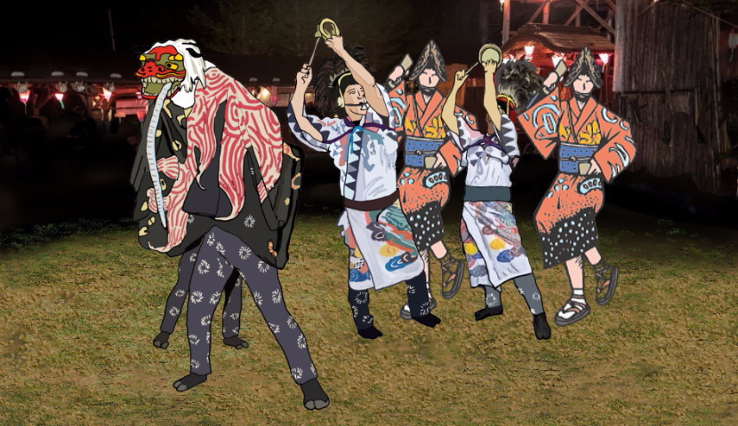 福地温泉の夏の恒例イベント(8月上旬から中旬)。市の無形文化財にも指定されている獅子舞が実演されます。その昔、村上天皇がお忍びで湯治に訪れた際、村人たちを苦しめている毒蛇を美しい笛の音で慰め、退治した伝説をもとにした獅子舞で、愛嬌のある獅子舞です。