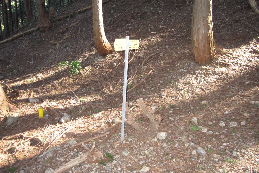 展望を楽しんだ後、往路はソボ洞登山口まで戻り尾根沿いに南に登って行くと136鉄塔のあるソボ洞に着く。ここには三等三角点がある。(点名は日当)となっている。展望は植林などで能郷白山方面の一部でコカシ洞の方が展望がよい。