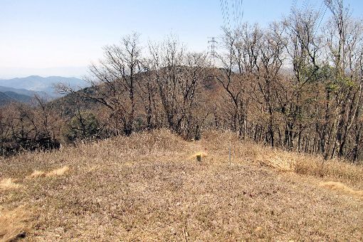 林道から左にそれて137鉄塔に下りる。前方を望むとコカシ洞山頂の138鉄塔が高くそびえている。さらに下って金原谷に通じる鞍部に下りる。ここから高位300mほど急傾斜を直登する。登り上がると一気に広がる好展望のコカシ洞山頂に着く。
