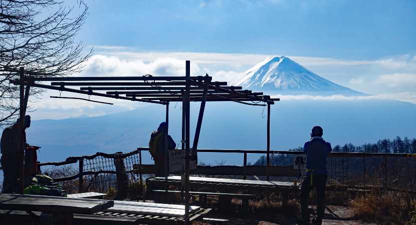 三ツ峠山荘前の展望テラスから富士山