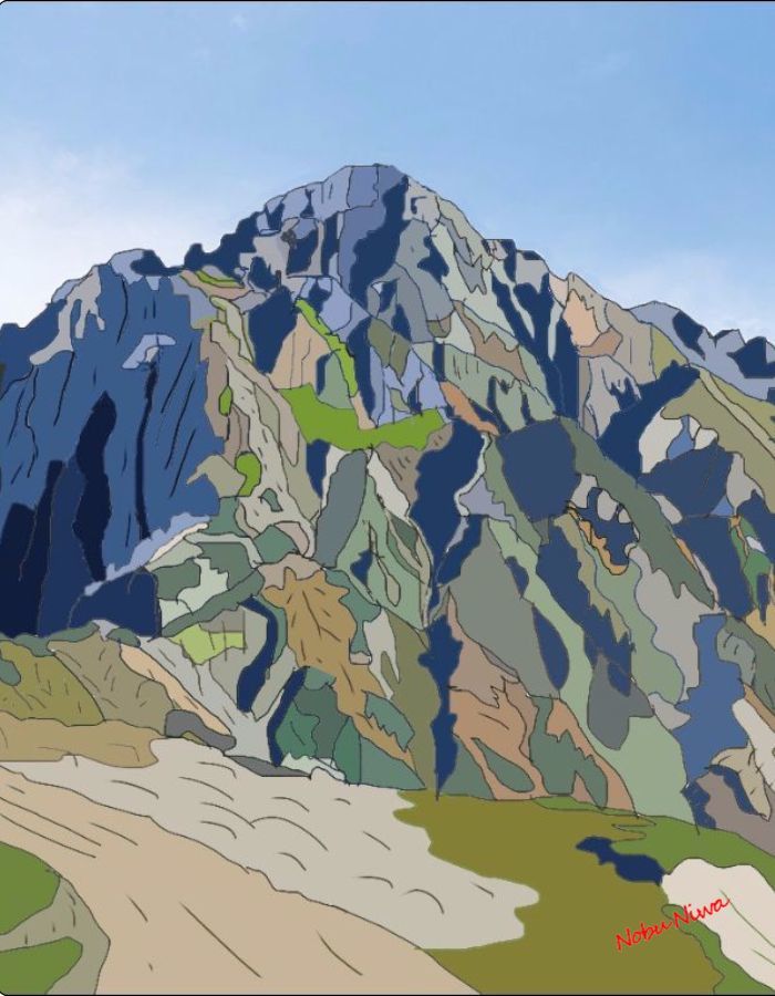 室堂ターミナルから地獄谷を通ってテント場のある雷鳥平にでる。浄土沢を渡ってその先で、急登の雷鳥沢を避けて新室堂乗越へ向かう。新室堂乗越から立山が一望できる展望はスケッチしたくなる光景。